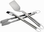 The right way to round out the griller's toolbox. This 3-piece stainless steel set includes a spatula, chef's tongs, and a silicone basting brush. Easy grip handle with gray silicone styling. Dishwasher safe. Made of stainless steel.